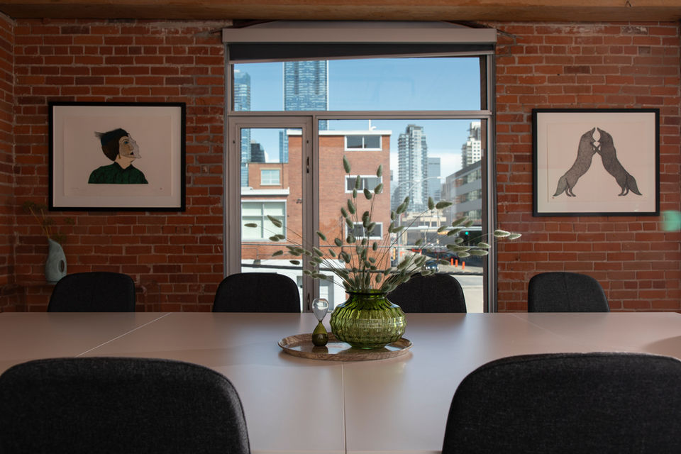 The Ninth & Peace boardroom is a flexible and fully private meeting space, offering coffee, tea and snacks, and equipped with central air, wifi, a whiteboard and meeting tech. This inviting space can seat up to 16 at the board table but readily reconfigures for all kinds of gatherings. A creative and comfortable space to host a workshop, chair a meeting, or renew your team with a creative retreat.